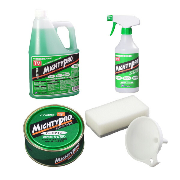 洗剤 ハウスクリーニング プロ用 業務用 プロ 住居用洗剤 住宅用洗剤 多用途洗剤 スプレー スプレー式 霧吹き 固形 ハードタイプ セット 液体 液体洗剤 液体タイプ 大掃除 年末年始 掃除 油汚れ 万能洗剤 多目的洗剤 キッチン 換気扇 コンロ 壁面 窓 床 日本製 ジェイワックス マイティープロ マイティプロ MIGHTYPRO mightypro 5点セット ろうと 漏斗 スポンジ おすすめ 人気 効果 比較 ランキング 女性 男性 誕生日 母の日 父の日 敬老の日クリスマス ギフト プレゼント 贈り物 レビュー 評判 通販