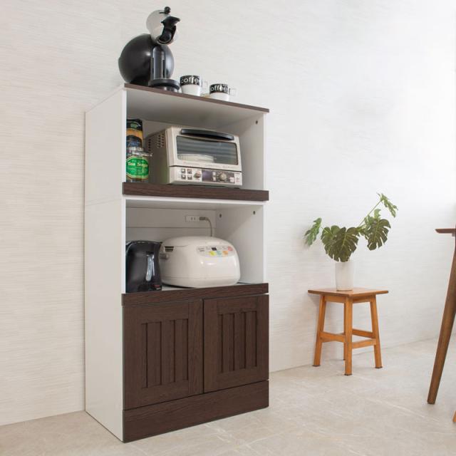 レンジ台では、2口コンセントが1つしかついていないものが多いですが、お客様のお声にお応えして上下とも2箇所にコンセントをつけました。