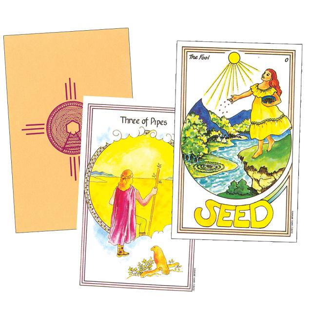 このデッキでは、22の大アルカナをグレートミステリーと呼び、「シード」(0番フール)から始まり「ダンサー」(21番ワールド)で終わる人生の道を描いています。小アルカナでは、石(コイン)、パイプ(杖)、矢(剣)、ボウル(カップ)となっています。伝統的なカードに対応する4つのカードは、見習い(ページ)、トーテム(騎士)、ロッジ(女王)、模範(王)です。このデッキは■作者紹介