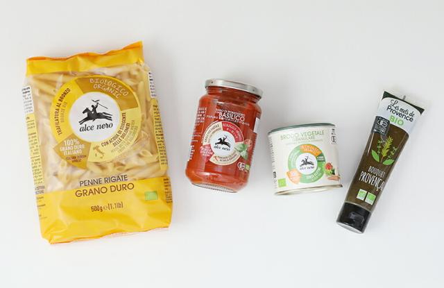 セット内容:アルチェネロ 有機野菜ブイヨン・パウダータイプ / アルチェネロ 有機パスタソース・トマト&バジル / アルチェネロ 有機ペンネ / メ・ド・プロヴァンス 有機プロヴァンスハーブペースト 各1点