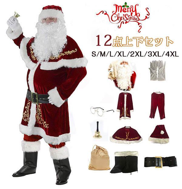 サンタクロース 衣装 男性 サンタ コスプレ メンズ サンタコス クリスマス セット 豪華 12点セット 大きいサイズS~4XL be198c0