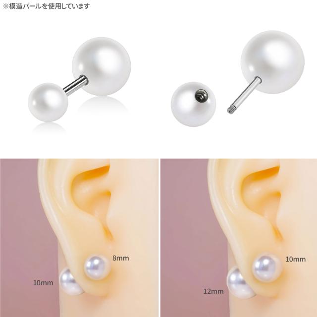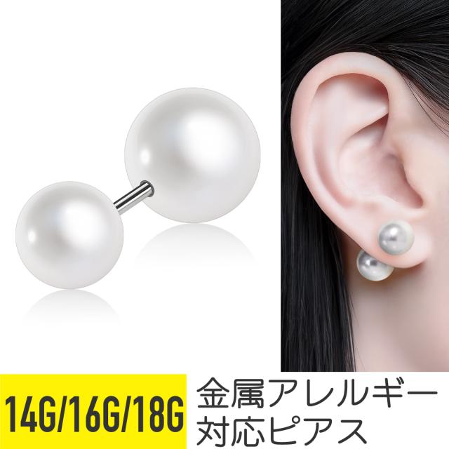 大きめ ダブルフェイクパール ストレートバーベル 14G 16G 18G サージカルステンレス イヤーロブ ヘリックス 軟骨ピアス ボディピアス パール