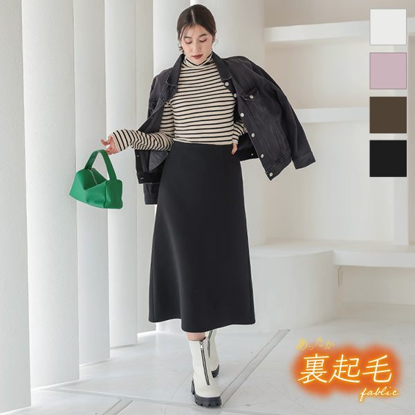 春新作 裏起毛ダンボールAラインスカート M3498 入荷済 レディース ボトムス スカート きれいめ カジュアル 体型カバー 秋冬 黒 スリット ダンボールカットソー 着回し シンプル デイリー ベーシック 40代 50代