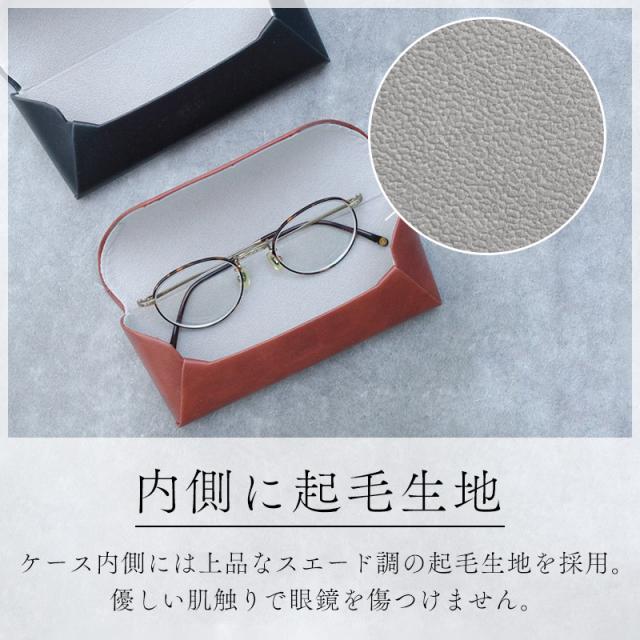 ●内側には上品なスウェード調の生地を採用し、眼鏡を優しく保護