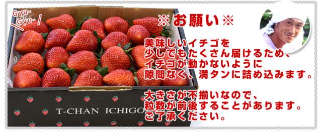 - 自分がいちご好きなため、毎年この時期になると、数人の知り合いにいちごを送ります。 「立派だった」「甘かった」等の連絡があり、とても喜んでもらえました。 生産者の皆さんの努力の賜物だと思います。