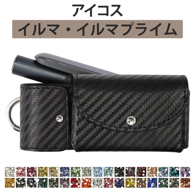 アイコス ILUMA イルマ PRIME プライム ケース【カーボン×高級クリスタル】アイコス アイコス アイコスイルマ イルマプライム カバー ポーチ タバコ たばこ 煙草 禁煙 喫煙 電子タバコ カラビナ ストーン キラキラ ワンポイント デコ 男性 メンズ ギフト メール便送料無料 受注生産