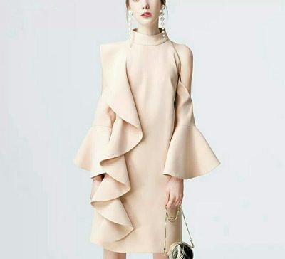 パーティードレス ワンピース フリル ラッフル ドレープ パーティー ドレス エレガント 結婚式 二次会 お呼ばれ ハイネック 無地 長袖