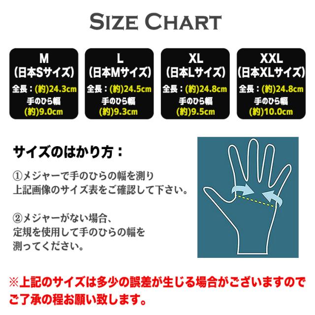 XXL(日本XLサイズ):全長:(約)24.8cm、手のひら幅:(約)10.0cm