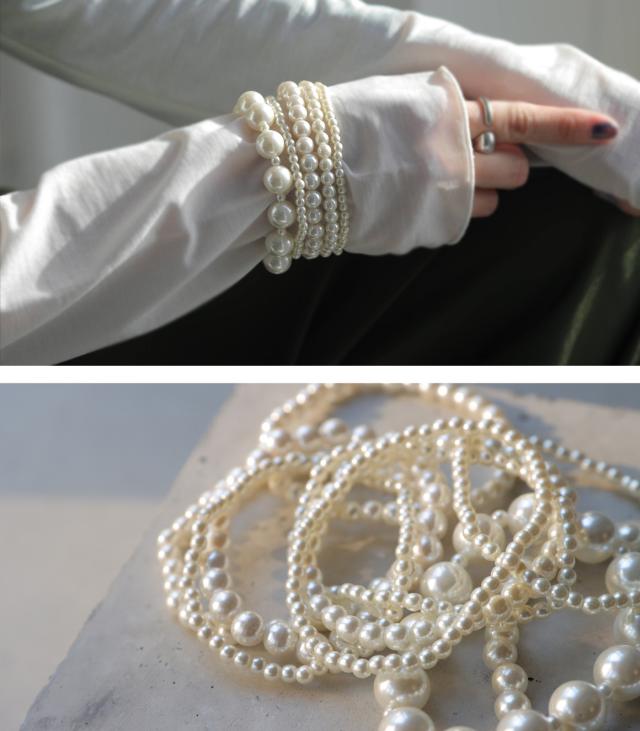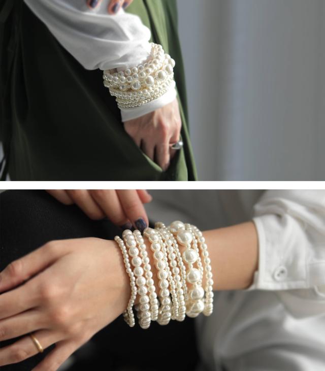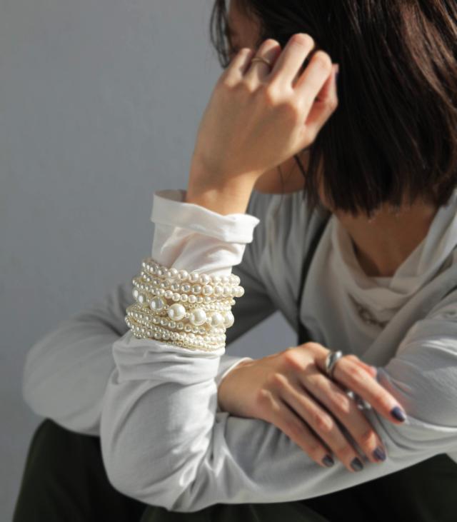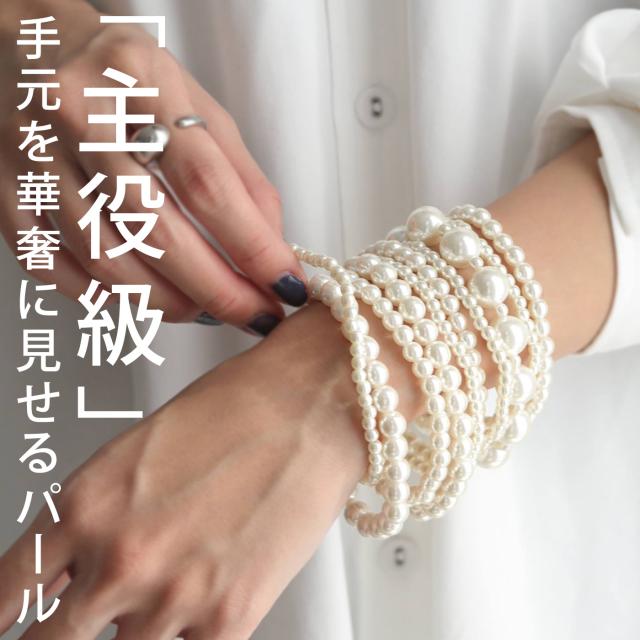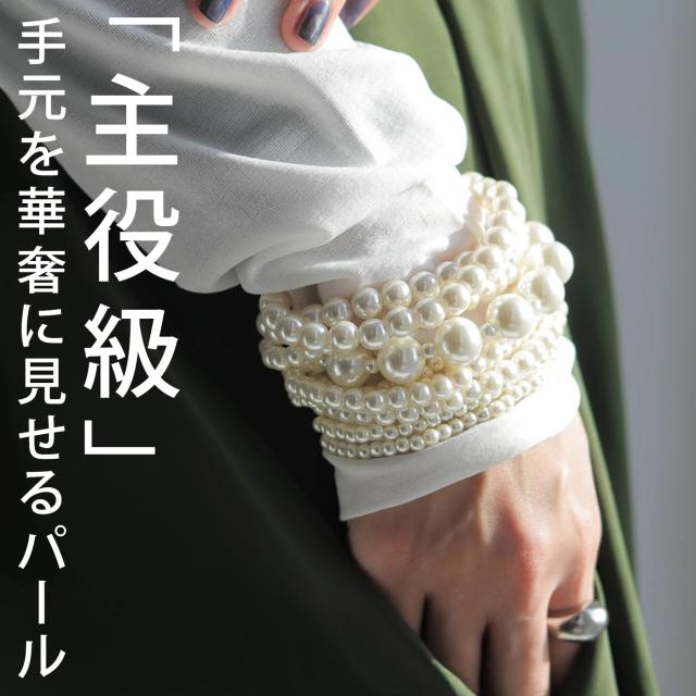 『主役級』手元を華奢に見せる10連パールブレスレット。