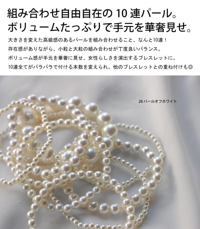 組み合わせ自由自在の10連パールブレスレット。