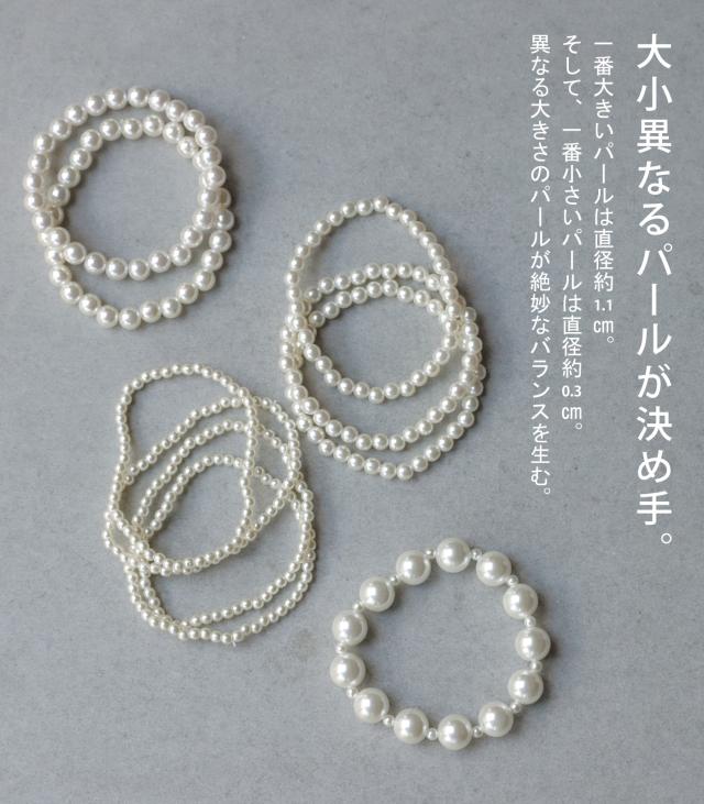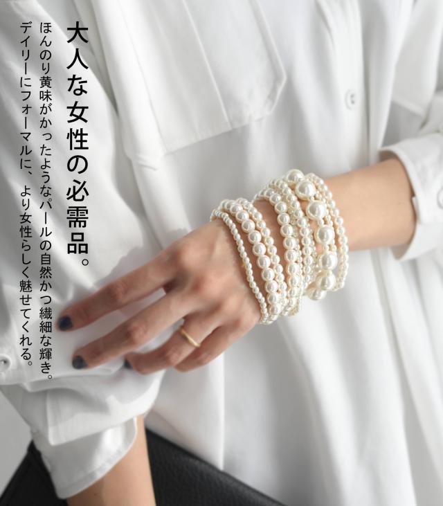 PJ-00040 パール 10連 ボリューム レイヤード 重ね付け 上品 高級感 小粒 大粒 ゴムブレスレット アレンジ アクセサリー アクセ 普段使い フォーマル 結婚式 二次会 パーティー