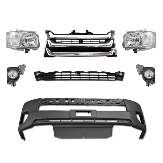 200系 ハイエース 4型 標準 タイプ ハロゲンヘッドライト フェイスチェンジ 7点セット Ver,2 フロントバンパー クリアクリスタルヘッドライト フォグランプ オプションタイプグリル インナーグリル 外装 トヨタ ナロー