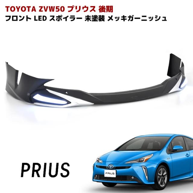 ZVW50 プリウス 後期 LED フロント リップ スポイラー メッキ ガーニッシュ 付き 未塗装 PP製 ハーフ エアロ