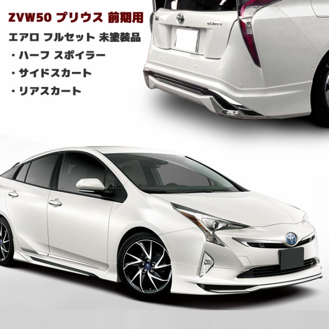 プリウス ZVW50 前期 エアロ フルセット Ver.2 3点 塗装品 040 スーパーホワイト LEDあり ハーフ スポイラー サイドスカート リアスカート HELIOS