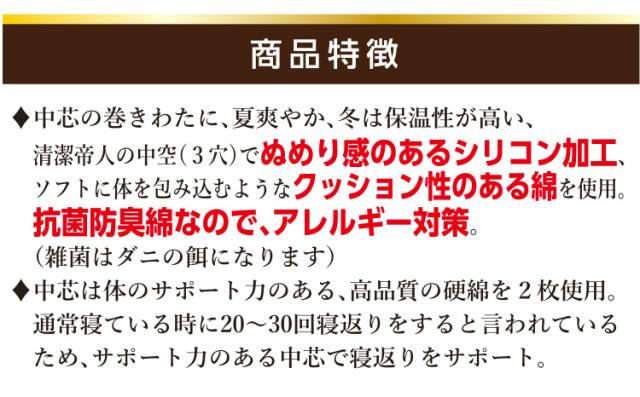 | 中 身 | 中綿:ポリエステル100% 中芯:固綿(3cm)×2枚 |