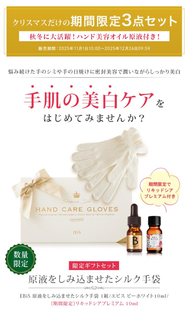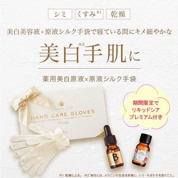 限定セット 原液美容液をしみ込ませたシルク手袋 美白原液エビスビーホワイトセット シアバターオイル ハンドケア 美白 手荒れ 美容液 シルク100% 手袋 プレゼント