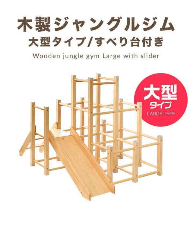 ジャングルジム 滑り台 大型タイプ 室内 木製 耐荷重50kg 天然木 パイン材 遊具 室内遊具 大型遊具 アスレチック 運動 すべり台 屋内 家庭用 子供 キッズ 室内ジム スロープ スライダー 2歳 3歳 4歳 5歳 6歳 男の子 女の子 プレゼント 送料無料