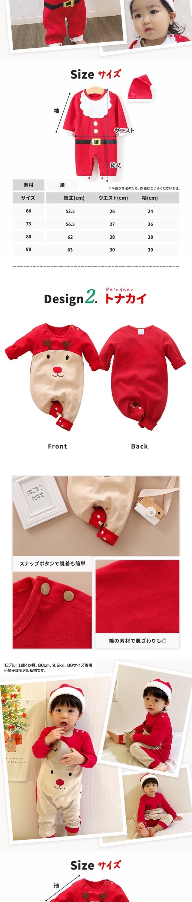 クリスマス 子供服 コスプレ ベビー服 オールインワン キッズ ベビー 子供 衣装 子供 赤ちゃん 男の子 女の子 コスチューム 60 70 80 サンタ トナカイ お揃い パーティ イベント 月齢 フォト ポイント消化 送料無料 新作 プレゼント ギフト 冬