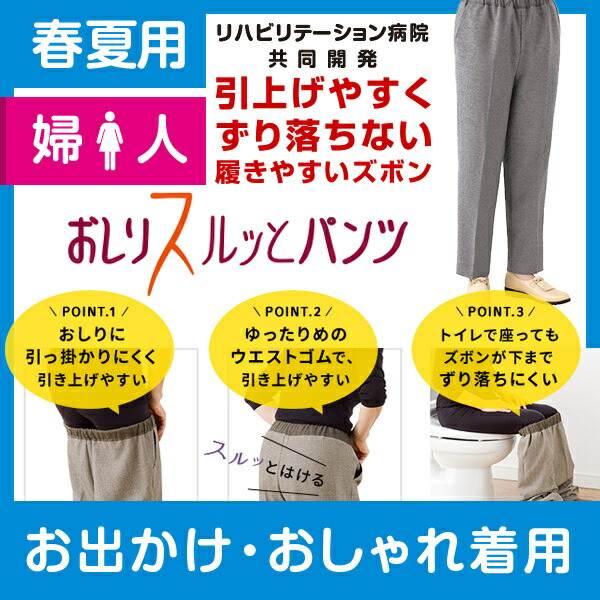【春夏用】婦人 おしりスルッとパンツ 履きやすいズボン シニアファッション シニア ズボン レディース 介護用ズボン 介護服 老人 高齢者 介護 介護ズボン 女性 おしりスルッと パンツ リハビリ 介護用品 ウエスト ゴム 高齢者 ケアファッション 敬老の日