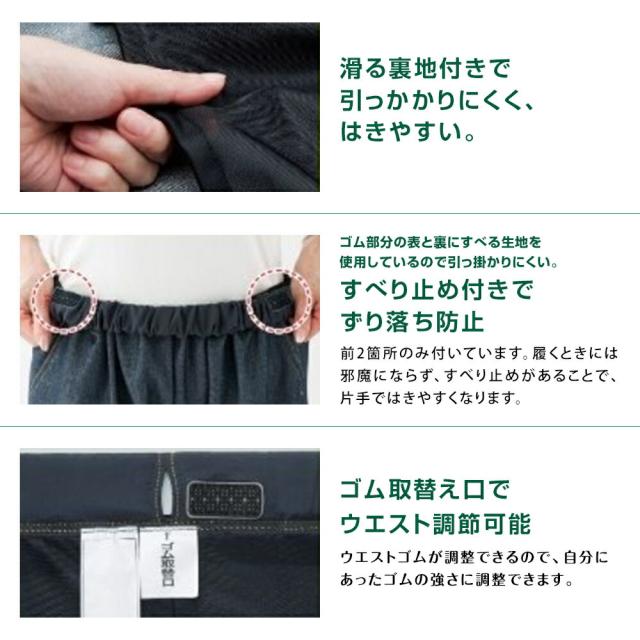 おしりに引っ掛かりにくく引き上げやすい「おしりスルッとパンツ」は、後ろに手が回らないのでズボンが上げられない・・・そんな多くのお悩みの声から誕生しました。