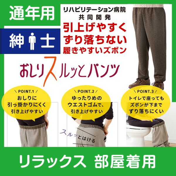【部屋着用】紳士 通年用★楽天1位★おしりスルッとパンツ カチオンタイプ 履きやすいズボン シニアファッション シニア ズボン メンズ 介護用ズボン 介護服 老人 高齢者 介護 介護ズボン 男性 おしりスルッと パンツ リハビリ 介護用品 ウエスト ゴム 敬老の日
