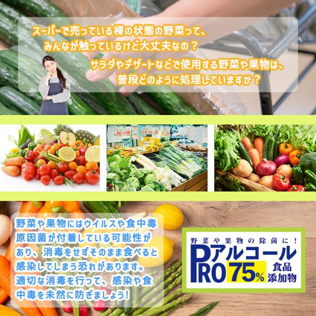 除菌 PRO アルコール 濃度75% 食品添加物 2L/ 消毒 野菜除菌 エタノール 果物除菌 キッチン キッチン除菌