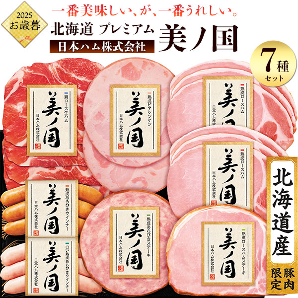 お歳暮 肉 ギフト 日本ハム 北海道 プレミアム 美ノ国 7種セット UKH-48 冷蔵配送 冬の贈り物 ハムギフト ハムセット 贈物 生ハム ロースハム ウインナーなど 詰合せ 御中元 贈り物 内祝 御祝 御礼 誕生日 グルメギフト 食べ物