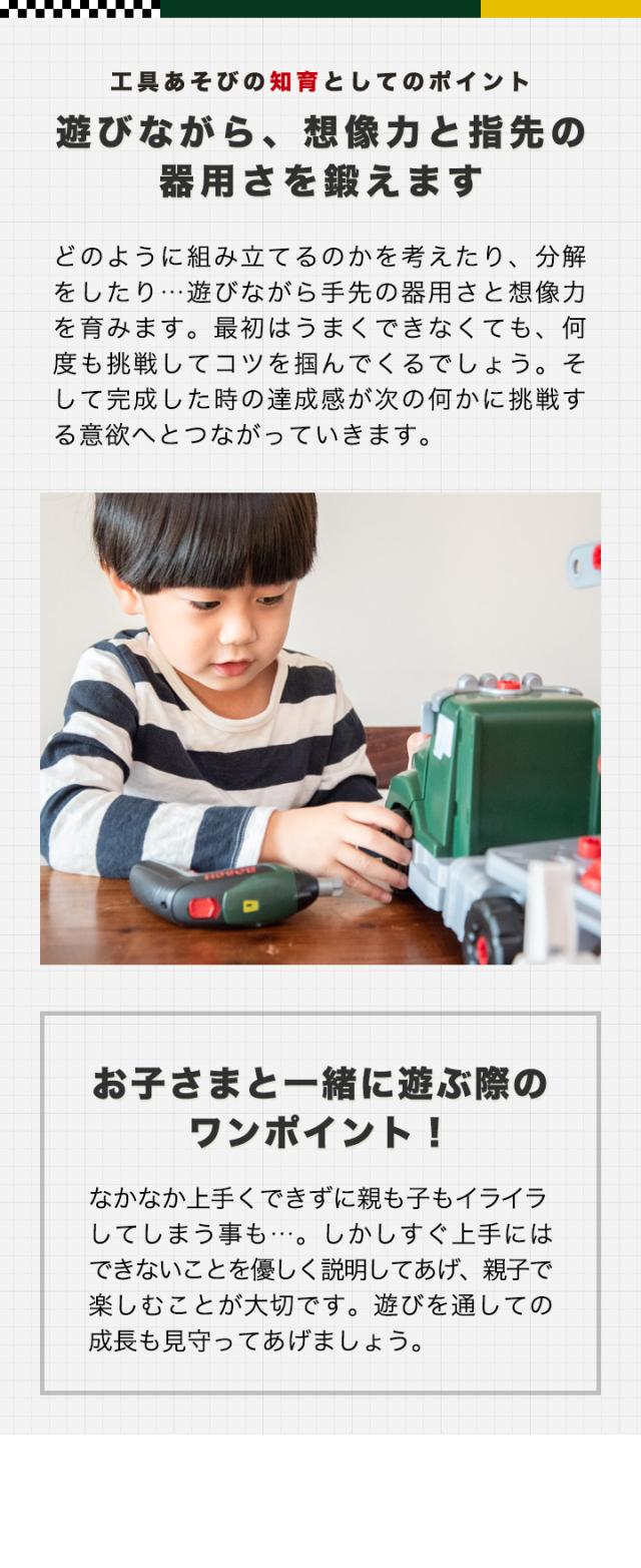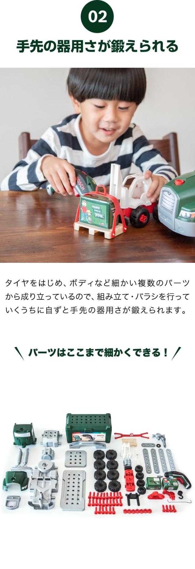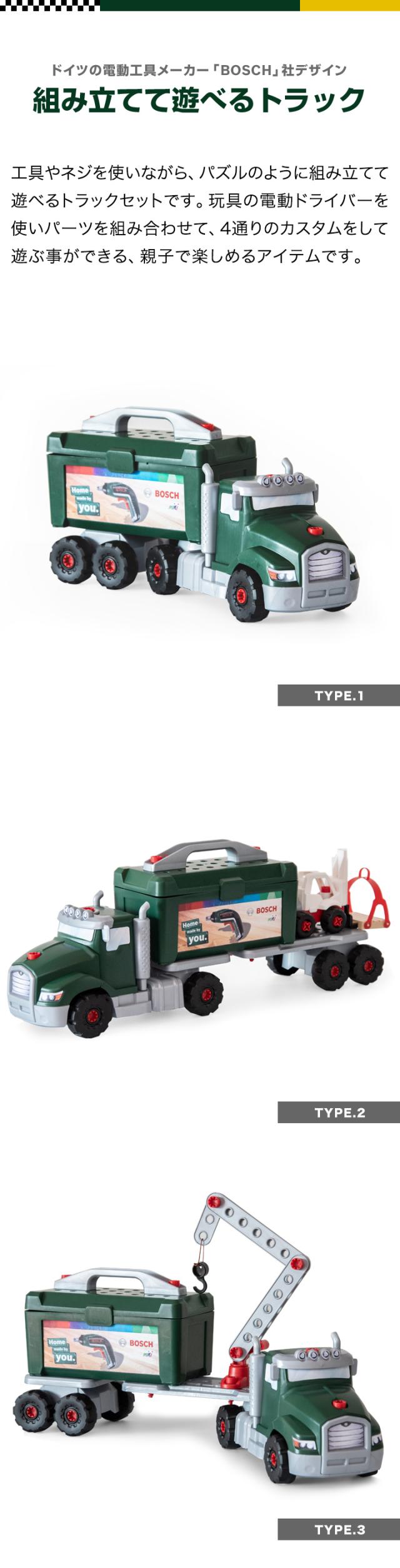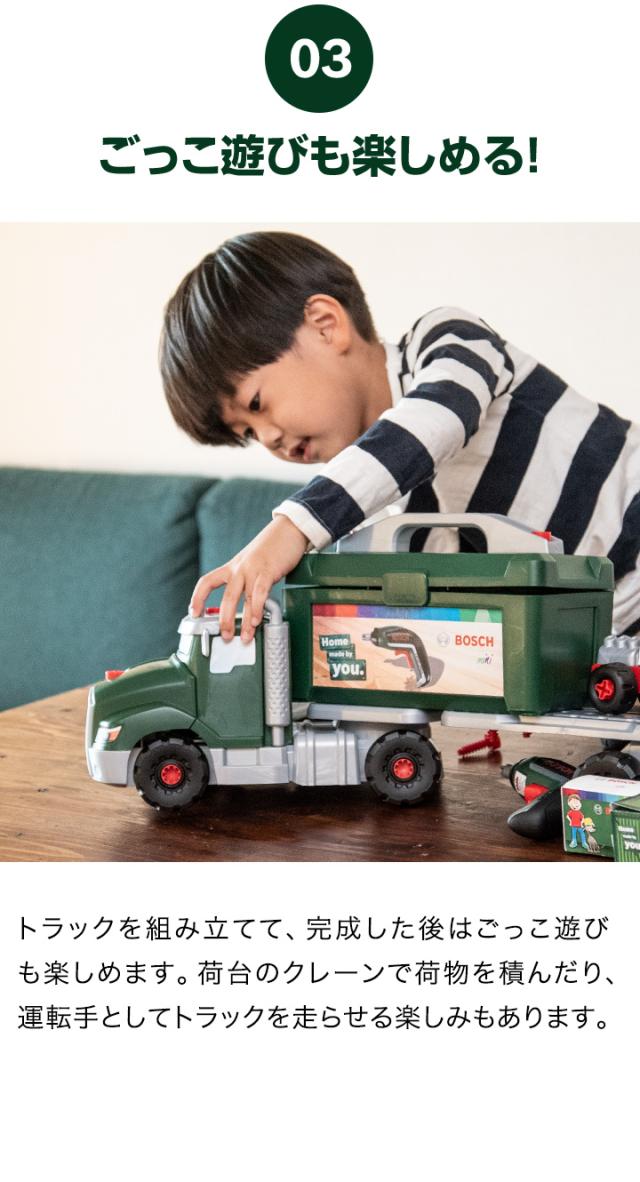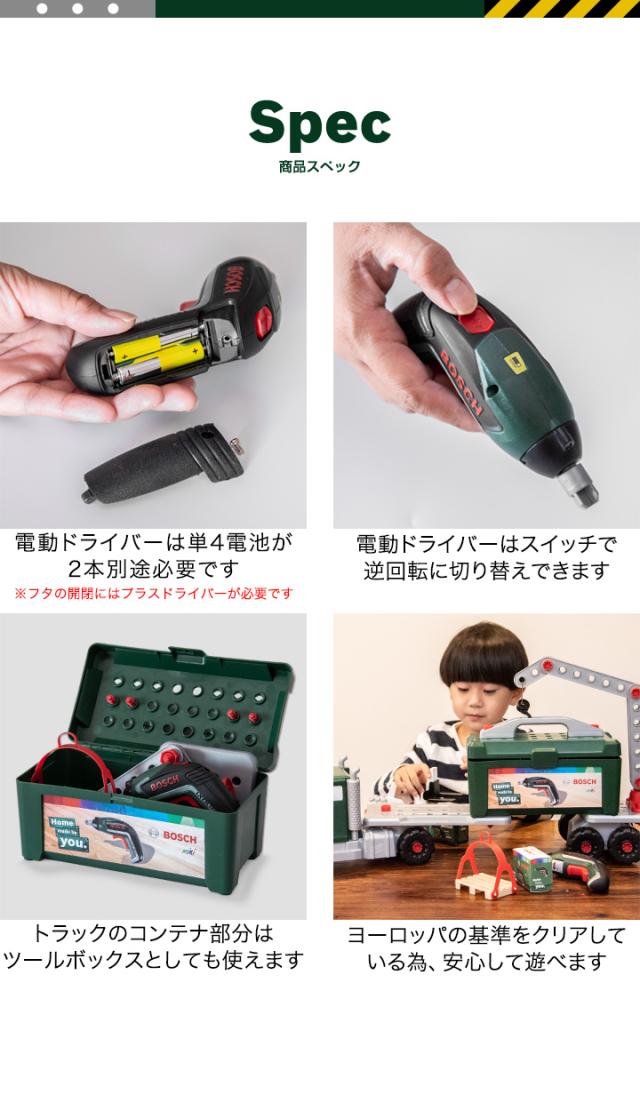 おもちゃ 工具セット Bosch ツールトラック セット 電動ドライバー付き 組み立て 分解 ボッシュ 工具 車 ミニカー トイカー 知育玩具 子供用 ツールボックス 収納ケース DIY 大工 まねごと ままごと Bosch Tool truck Set + Ixolino 8640 送料無料