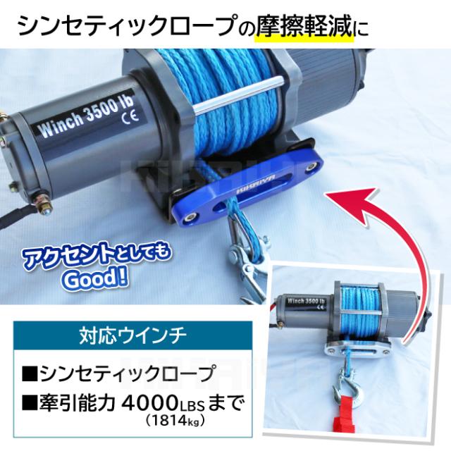 | 対応ウインチ | シンセティックロープ、能力4000ポンドまで DC12V-8 ・ DC12V-11 ※他社製品との適合は判断いたしかねます |