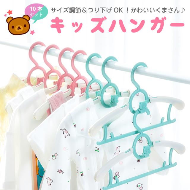 ハンガー 子供用 キッズ ベビー 10本セット サイズ調整 洗濯 収納 子供服 かわいい 省スペース 新生活 kids-hanger agesugi_snk agesugi_snk