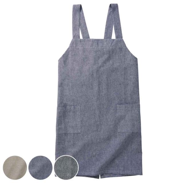 エプロン 綿100% ポケット付き 無地 フロスティ ( キッチンエプロン バッククロスエプロン ユニセックスエプロン アビチュアル 大人用 綿 コットン 100% 台所エプロン カフェエプロン カジュアルエプロン habitue )