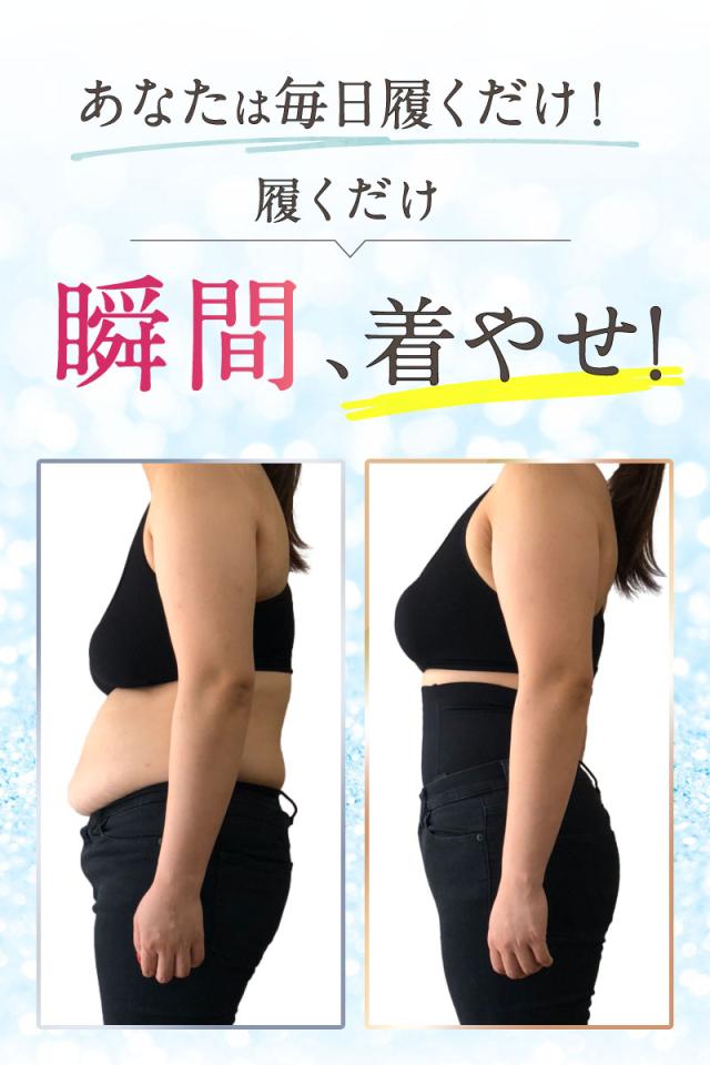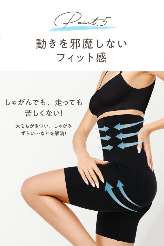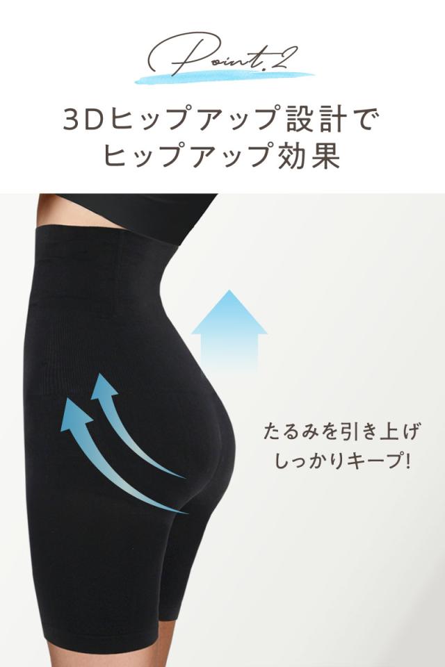 キュッとお尻を持ち上げ、お腹を引き締めるので、着用前と後ではスタイルの見え方に大きな違いが!