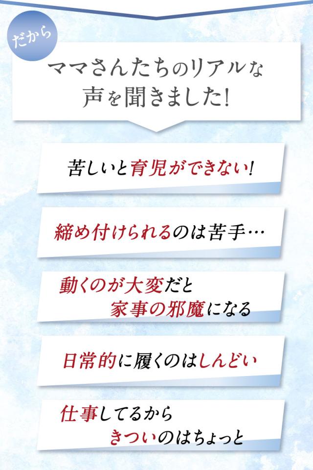 産後ママの場合は骨盤ベルトとの併用でお使いになることもお勧めします。