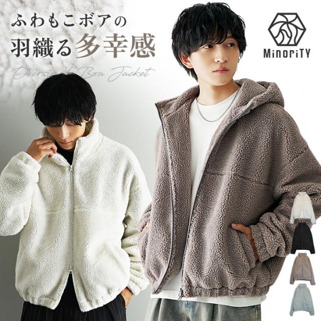 新作 ボアブルゾン メンズ ボア ジャケット メンズ 防寒 大きいサイズ パーカーメンズ オーバーサイズメンズ パーカー フリース あったか ゆったり ビッグシルエット 秋 冬 フード付き カジュアル ダブルジップ ジップアップパーカー 韓国系 マイノリティ minority