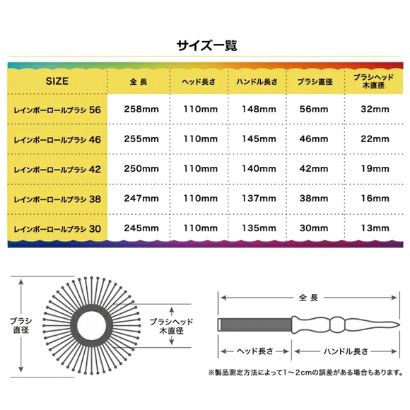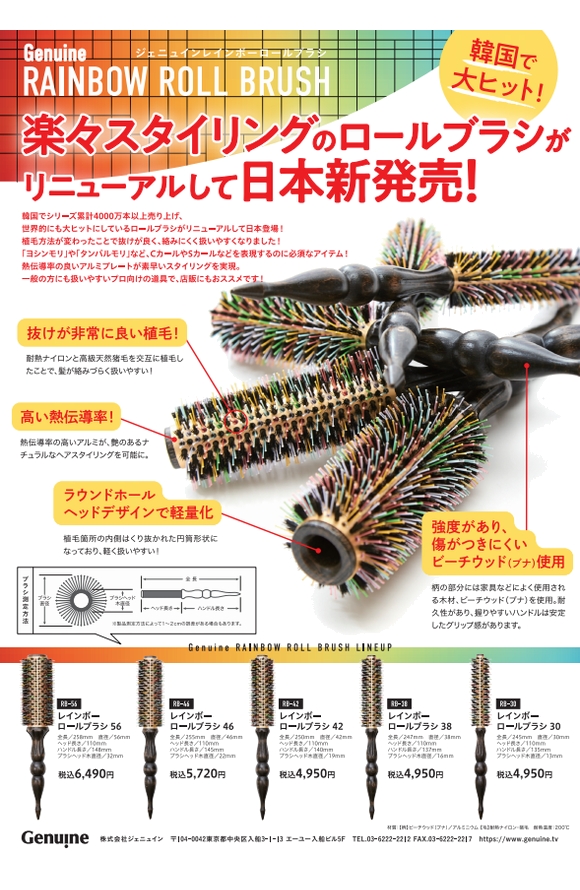 累計4,000万本売り上げたロールブラシシリーズが2021年9月、リニューアルして日本発売!!! 元気が出る、カラフルなレインボーカラーが可愛いロールブラシです。 植毛をリニューアルしたことで、髪が絡みづらく抜けが良く改良され、通常のサロンワークはもちろん、一般の方にも扱いやすくなりました。 レビュー商品の評価: お店の情報お店の評価: 連絡・応対 - 配送スピード - 梱包 - 注目の特集 | ||||||||||||||||||||||||||||||||||