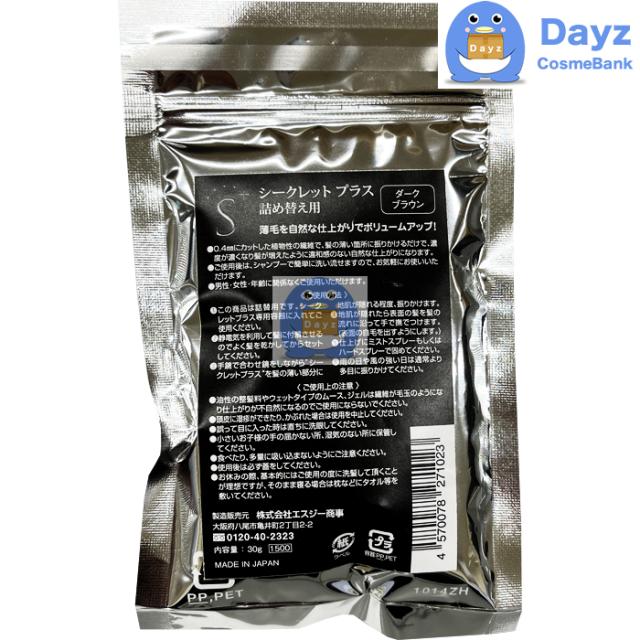シークレットプラス ダークブラウン 30g 詰め替え用 通常便 | 増毛 増毛粉 増毛パウダー 薄毛隠し 白髪隠し 薄毛パウダー ハゲ隠し パウダー 男性用 女性用 男女兼用