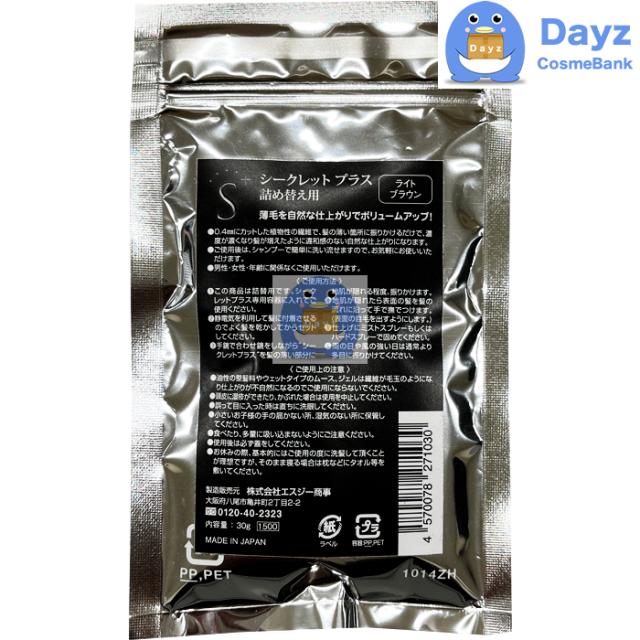 シークレットプラス ライトブラウン 30g 詰め替え用 通常便 | 増毛 増毛粉 増毛パウダー 薄毛隠し 白髪隠し 薄毛パウダー ハゲ隠し パウダー 男性用 女性用 男女兼用