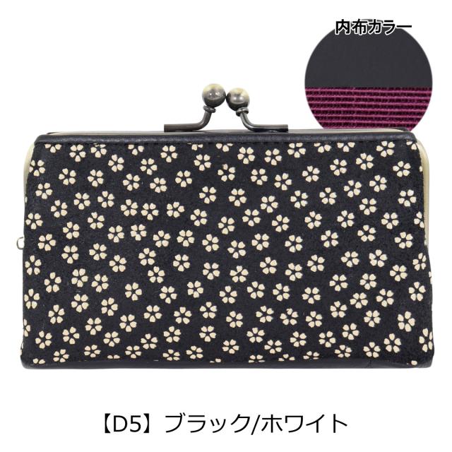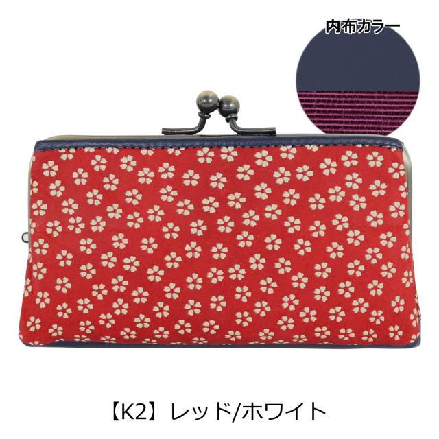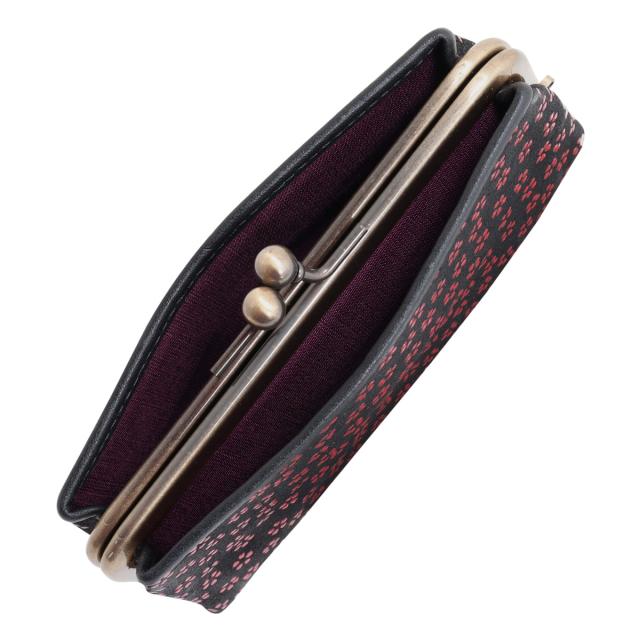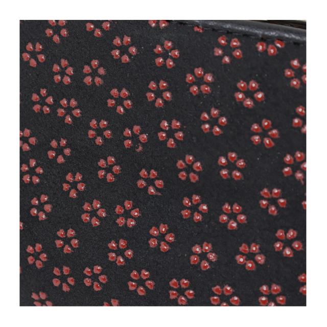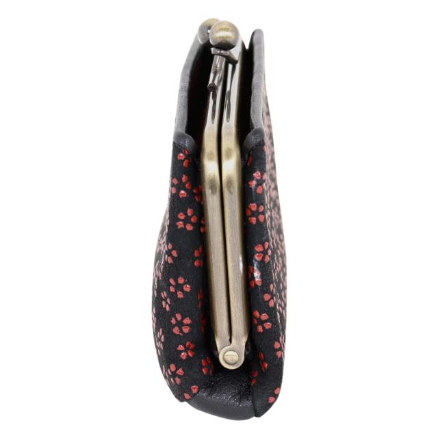 小桜が散りばめられた美しく使い易いアオリ付きがま口財布です。鹿革をなめして、上から漆で柄付けするという、約400年ほど前から行われている日本を代表する革製品を使用。鹿革は軽量で、しなやかで強く、やさしい自然の感触を、長く楽しむことができるレザーです。使い込むほどに味わい深くなり、愛着の湧く逸品です。