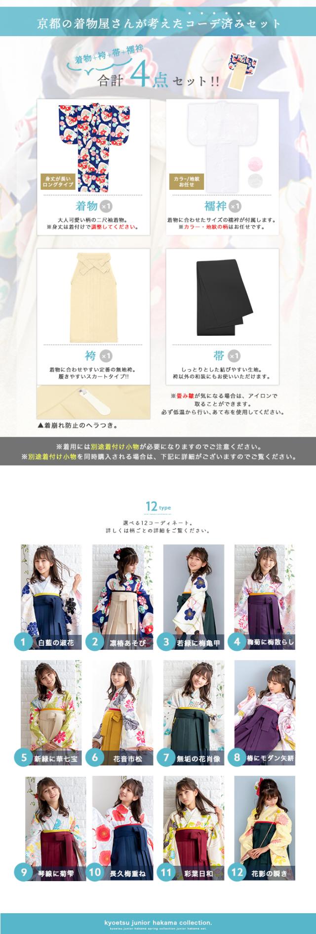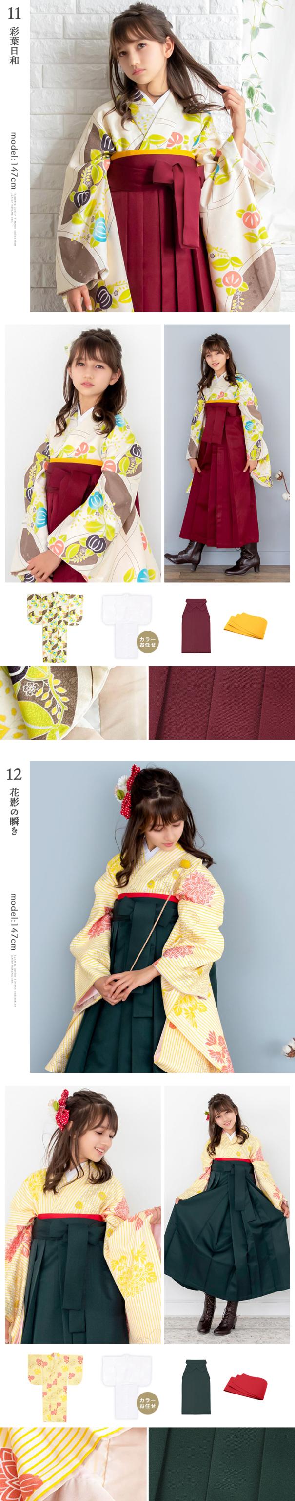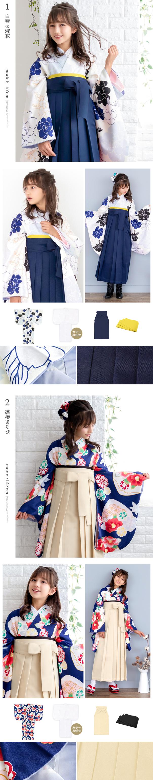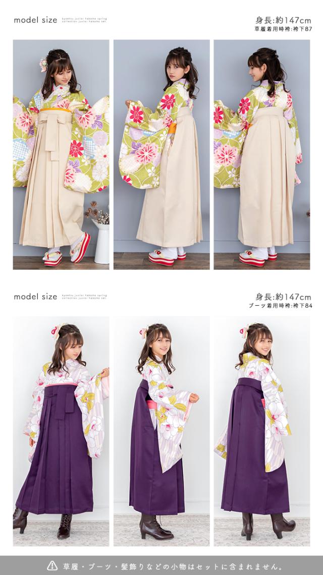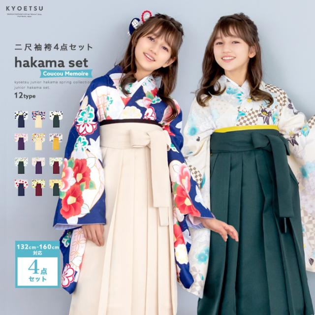 (袴4点セット CCM D ジュニア) 袴 袴セット 卒業式 小学生 4点セット(着物/袴/帯/長襦袢) 卒服 着物 二尺袖着物 袴 はかま 振袖 子供 和服 和装 ジュニア ガールズ 女の子 謝恩会 セレモニー パーティー 大学生 大学 中学生