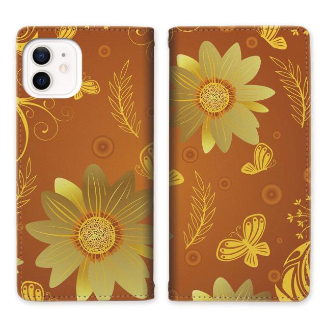 apple iPhone12 iPhone12Pro 共通 ベルトなし スタンド機能 - 秋桜デザイン - 手帳型 スマホケース 手帳ケース 手帳カバー スマホカバー マグネットでピタッと閉じる