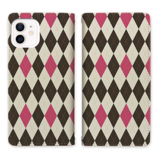 apple iPhone12 iPhone12Pro 共通 ベルトなし スタンド機能 - アーガイルデザイン - 手帳型 スマホケース 手帳ケース 手帳カバー スマホカバー マグネットでピタッと閉じる