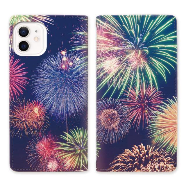 apple iPhone12 iPhone12Pro 共通 ベルトなし スタンド機能 - 花火夏の寺デザイン - 手帳型 スマホケース 手帳ケース 手帳カバー スマホカバー マグネットでピタッと閉じる