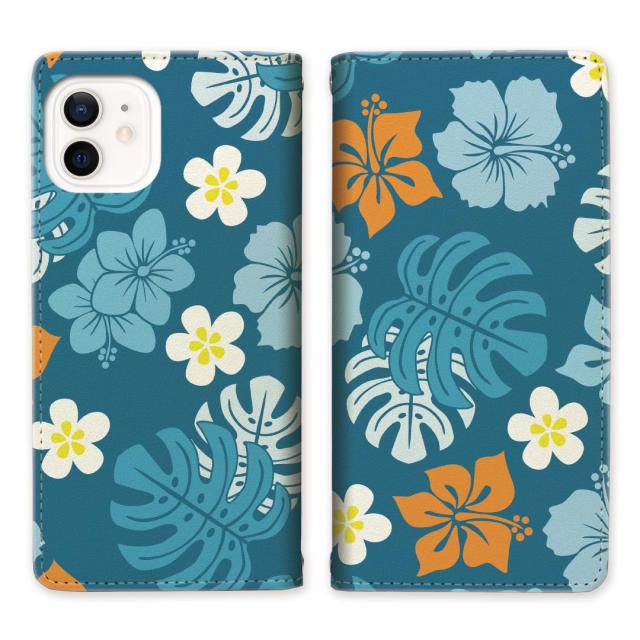 apple iPhone12 ベルトなし 手帳型 スマホケース スタンド機能 【ブルーイッシュハイビスカスデザイン】マグネットでピタッと閉じる スマホケース スマホカバー 手帳ケース 手帳カバー