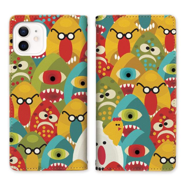 apple iPhone12 iPhone12Pro 共通 ベルトなし スタンド機能 - Eggモンスターデザイン - 手帳型 スマホケース 手帳ケース 手帳カバー スマホカバー マグネットでピタッと閉じる