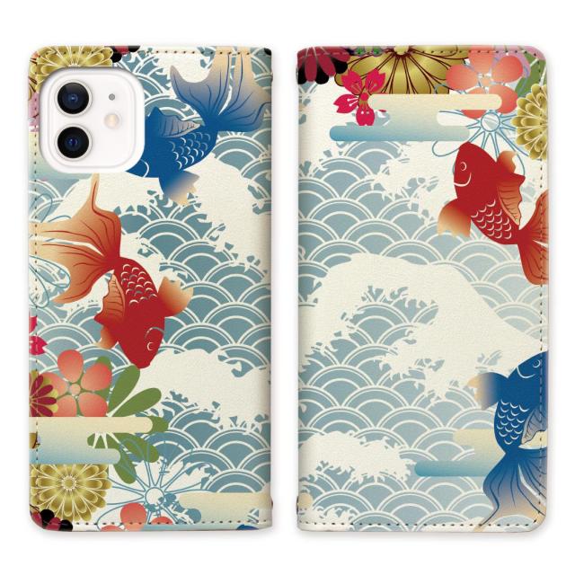 apple iPhone12 iPhone12Pro 共通 ベルトなし スタンド機能 - 金魚デザイン - 手帳型 スマホケース 手帳ケース 手帳カバー スマホカバー マグネットでピタッと閉じる