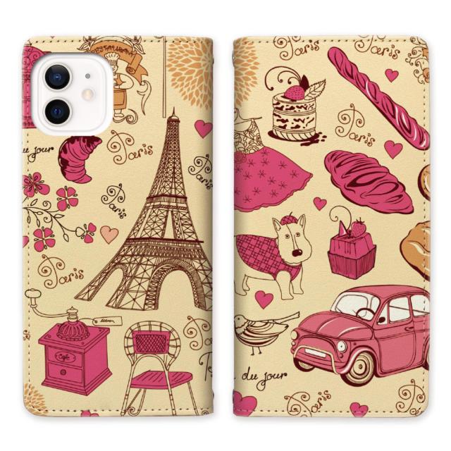 apple iPhone12 ベルトなし 手帳型 スマホケース スタンド機能 【Parisデザイン】マグネットでピタッと閉じる スマホケース スマホカバー 手帳ケース 手帳カバー