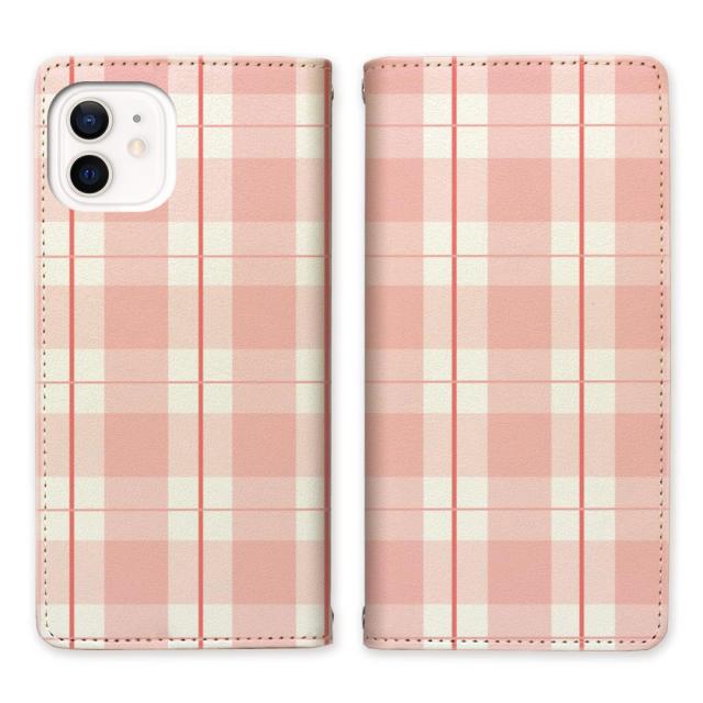 apple iPhone12 iPhone12Pro 共通 ベルトなし スタンド機能 - ピンキーチェックデザイン - 手帳型 スマホケース 手帳ケース 手帳カバー スマホカバー マグネットでピタッと閉じる