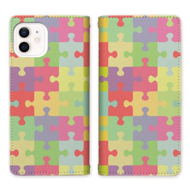 apple iPhone12 iPhone12Pro 共通 ベルトなし スタンド機能 - パズルデザイン - 手帳型 スマホケース 手帳ケース 手帳カバー スマホカバー マグネットでピタッと閉じる