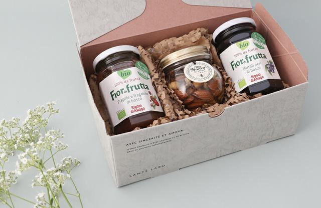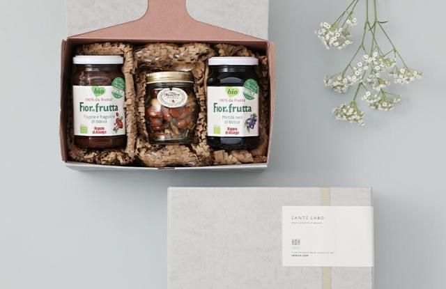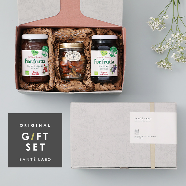 | 【サンテラボ オリジナルギフトセット】スプレッドギフトセット イタリアのオーガニックブランド「フィオールディフルッタ」フルーツスプレッド2種と、 日本生まれのブランド「マイハニー」のナッツの蜂蜜漬けをセットにしました。 オーガニックにこだわり抜いたフルーツスプレッドは無加糖ながらも適度に甘く、 とてもバランスのとれた、まさに大人のための上品なおいしさのあるジャムです。 ナッツの蜂蜜漬けは栄養たっぷり4種のナッツを さっぱりクセのないアカシアハニーに漬け込みました。 とろ〜りマイルドで贅沢な甘みがナッツの香ばしさにじわっと溶け込んで、 まるで一皿の極上スイーツのよう。 どちらもヨーグルトにかけたり、クラッカーに載せたりと、 いろいろな食べ方のアレンジができるので 美味しいもの好き、お料理好きなお友達への贈り物にぴったり。 ヘルシーだけど甘くて美味しい、女性に喜ばれること間違いなしのセットです。 サンテラボのオリジナルボックスに入れてお届けします。 ![]() | ||