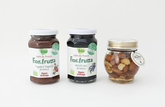 セット内容:フィオールディフルッタ オーガニック フルーツスプレッド 250g <ストロベリー・ブルーベリー各1点>、マイハニー ナッツの蜂蜜漬けL 200g 1点